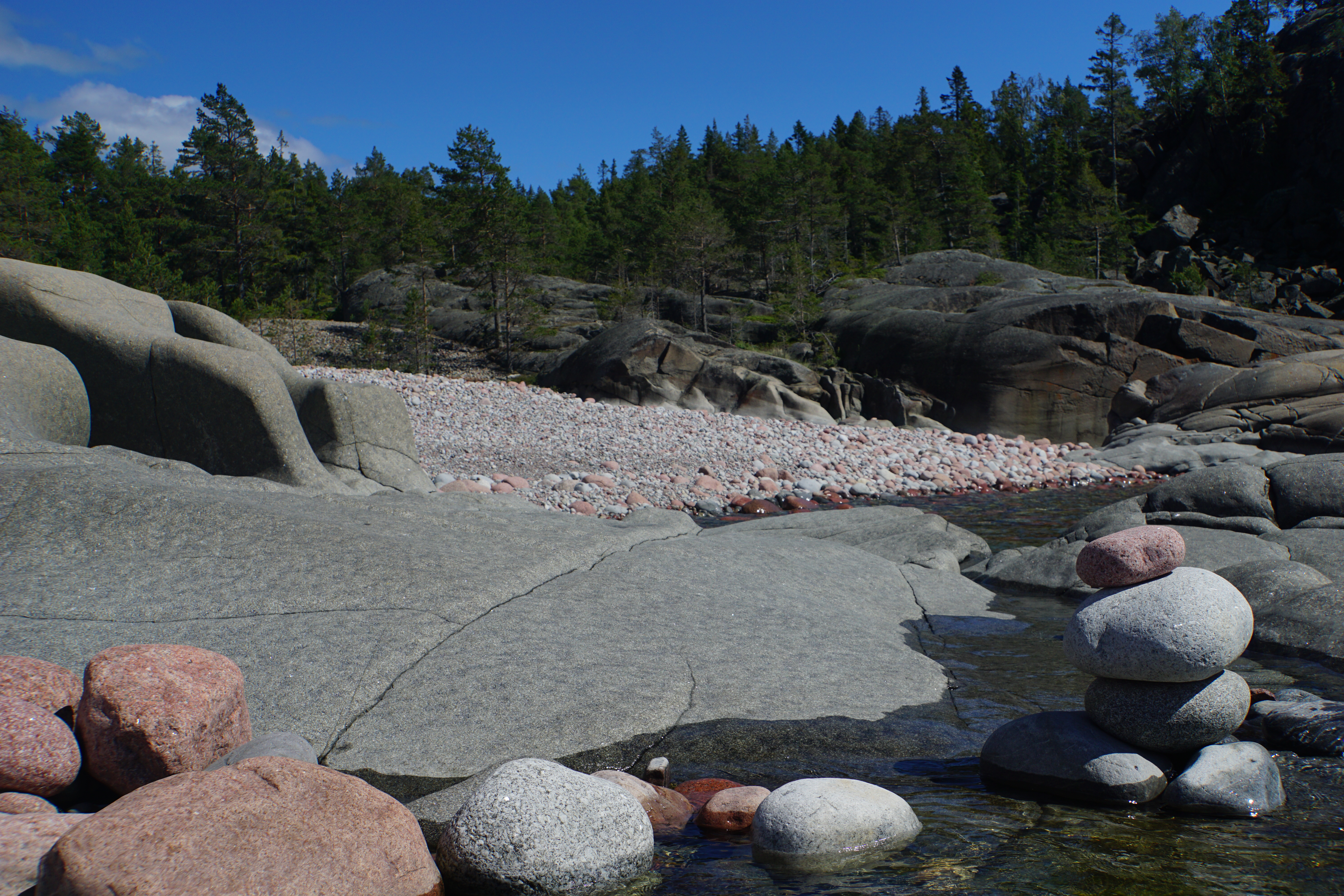 Slowly the weather cleared and sun and blue sky were seen. One advantage of being tied up by 10 o’clock was we had ample time to explore the island and it gave us a chance to revisit our favourite stone beach with its big silky smooth rounded cobbles and big grey rocks – shaped by the sea into perfect seats and warmed by the sun.