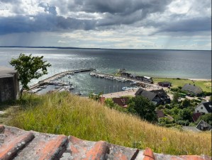 We finally cast off our lines from Copenhagen, passing the harbour that I had first sailed to, at the age 17 with the Ocean Youth Club. Leaving the harbour past some key sights: the magnificent opera house with the Royal Palace opposite, the Little Mermaid – an unusually solitary figure given the tourists were still in bed. We had to wait briefly to leave the harbour, as a massive cruise ship was docking. As we settled into our passage, Mags thankfully pointed out that we were heading back to Malmo and completely in the wrong direction… a bit embarrassing! A quick course correction and a 14nm passage to the island of Ven, motoring all the way due to a lack of wind, only the ever-present cargo ships keeping us on our toes. Ven was Swedish – so a quick change of courtesy flag was needed. Our initial place in the harbour was just by the entrance. But it was clear the swell caused by the cargo ships passing the island, would make it bouncy and unpleasant. When a boat left from a prime spot, we were quick to move, worth redoing the lines for a bit of piece of quiet. We went for a walk round a little bit of the island – but when the sky turned an ominous dark grey, our planned walk was abandoned and our pace quickened. Just arriving before the heavens opened.