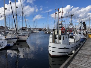 We arrived at 12 in the busy fishing harbour of Gilleleje on the north of the island of Zeeland. Grateful that we had managed to find the last place…..or so we thought – for the next 8 hours boats kept arriving. They crammed in, rafted 4 deep/ hanging off fishing boats. It is famed for its fresh fish for sale in the fish shacks that surround the harbour. Of all the delicious fresh fish that Mags bought, we won’t be buying salted fish again …. it was inedible. Unbelievable and annoyingly (as we had written some postcards) – there was no letter box in the whole town.