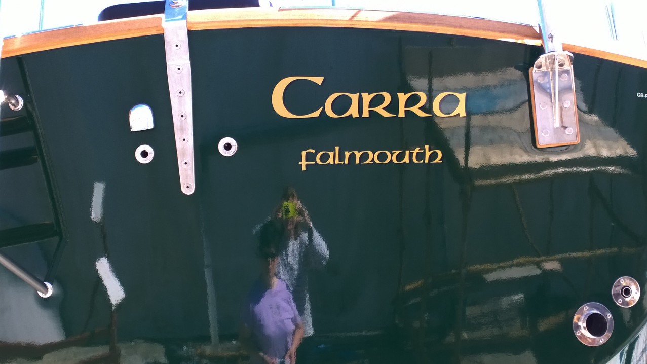 On the road by 0730 and we were flying down towards Falmouth. It was a glorious sunny day as we drove into the yard and had our first glimpse of Carra and she looked magnificent.